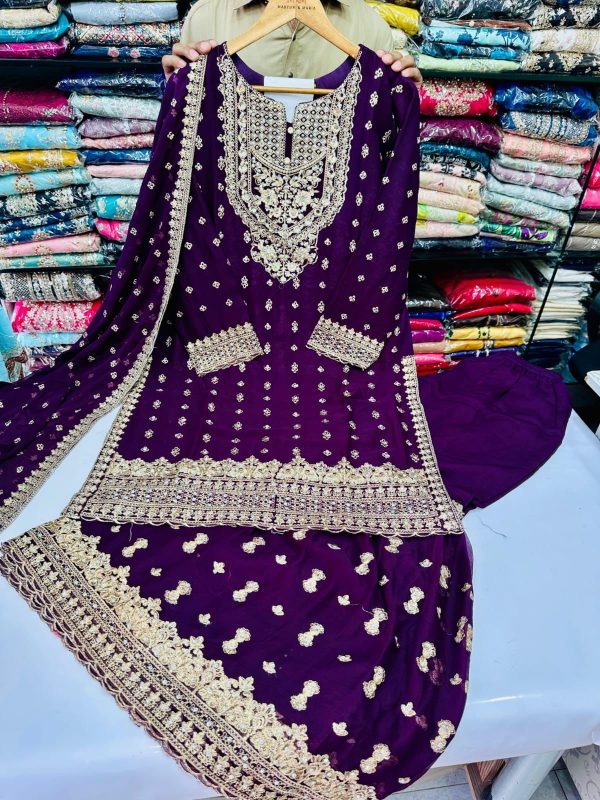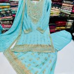 3Pc Embroidered Chiffon Sharara with chiffon Dupatta
